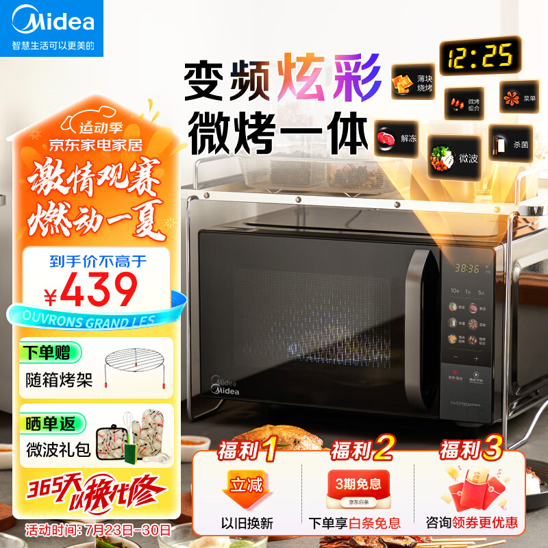 美的(Midea)微波炉变频家用20升 800W快捷平板速热 微波炉烤箱一体机C22 双模烧烤 高清彩屏 一级能效价格:439.00元!