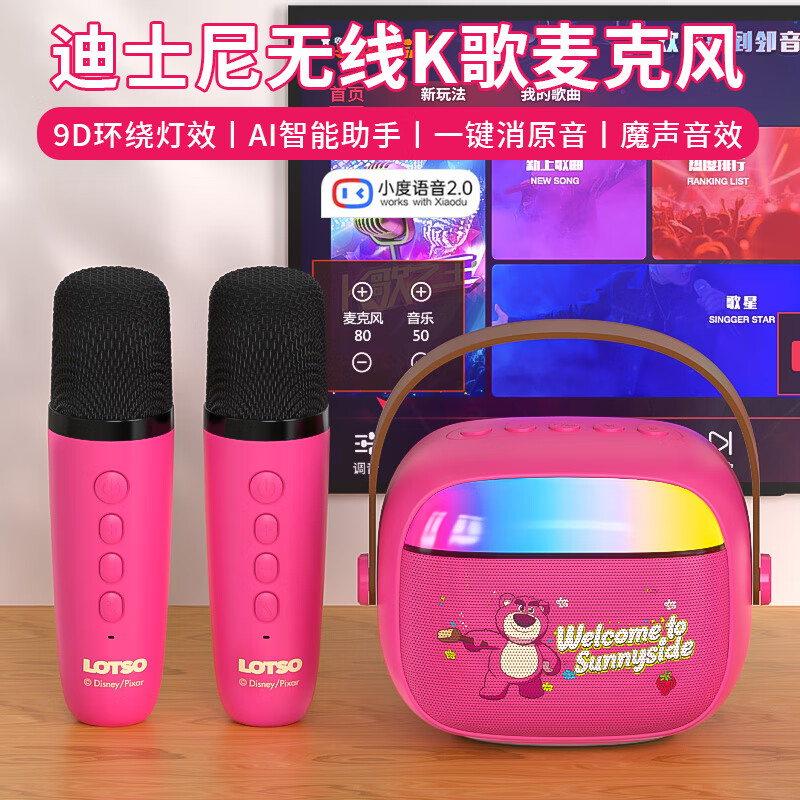 迪士尼(DISNEY)话筒音响一体麦克风k歌音箱自带声卡无线蓝牙手机直播儿童生日礼物娱乐家庭ktv音响套装MK30草莓熊价格:169.00元!