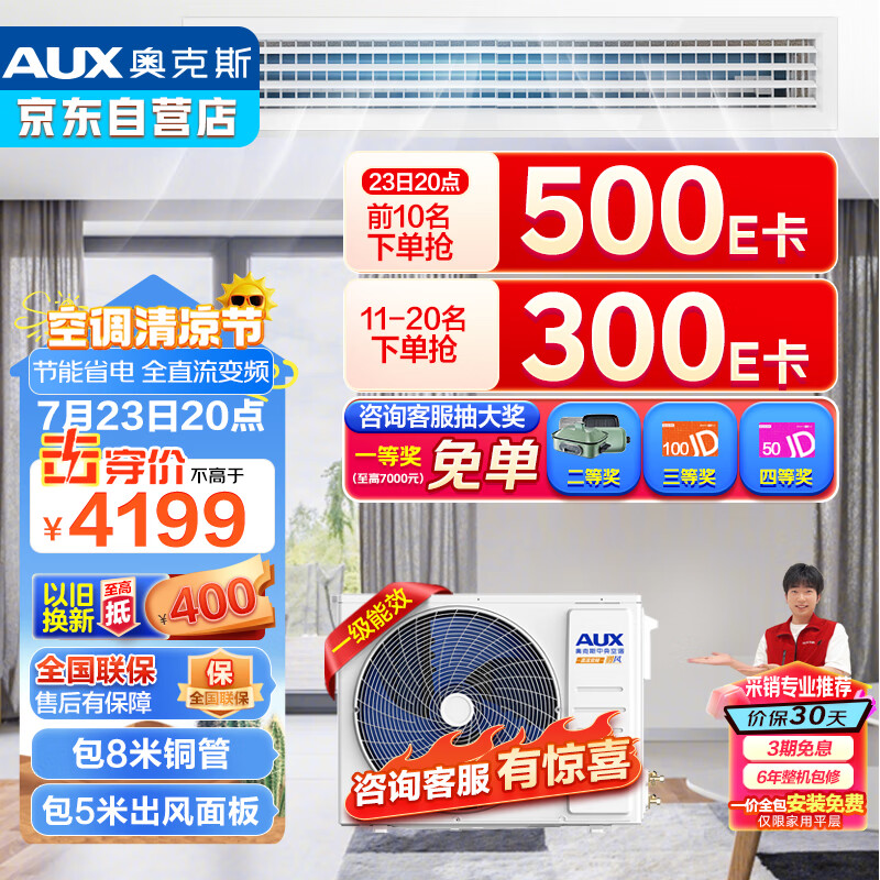 奥克斯(AUX)风管机一拖一大1.5匹中央空调 一级能效 全直流变频 卧室书房嵌入式空调GRD36/BPR3QA-QF2(B1)价格:4189.00元!