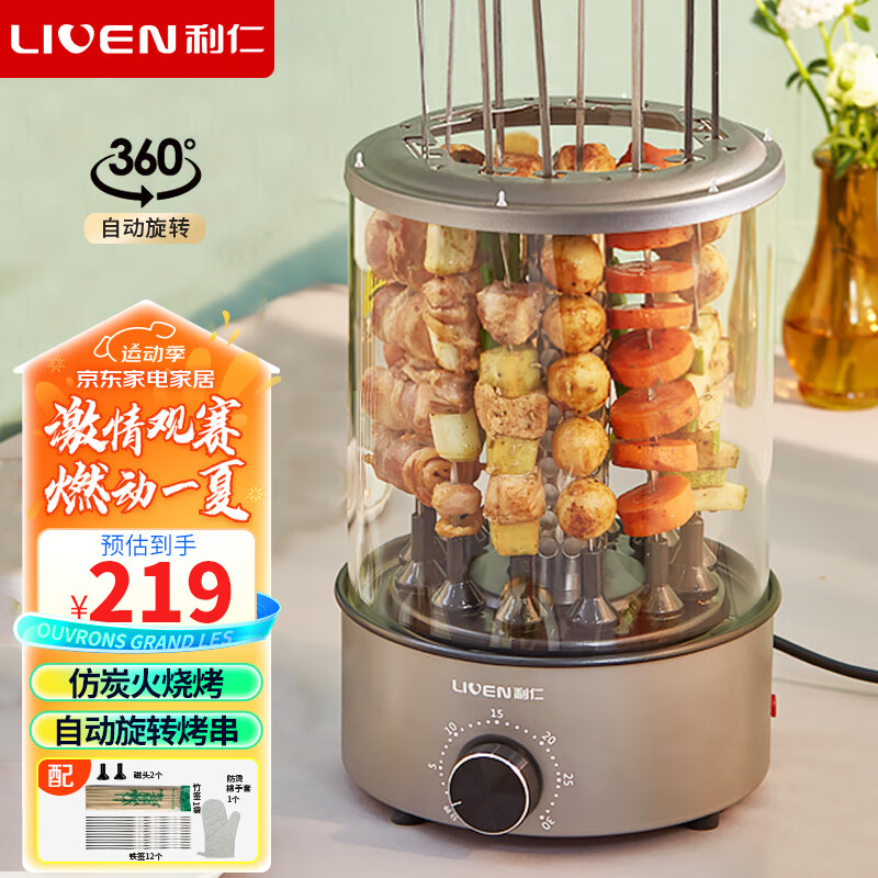 利仁(Liven)电烧烤炉家用烤肉锅电烤炉自动旋转烤肉机烤串机烧烤炉烧烤架烧烤锅电烤锅电烤架KL-J121价格:219.00元!
