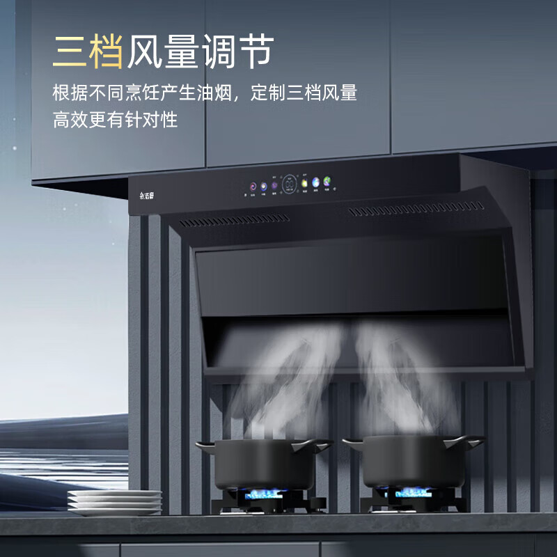 4、很不错的一款油烟机,可以挥手控制开关,还有延时关机功能,非常方便,价格不贵,单双电机开启和关闭,强烈推荐哦!