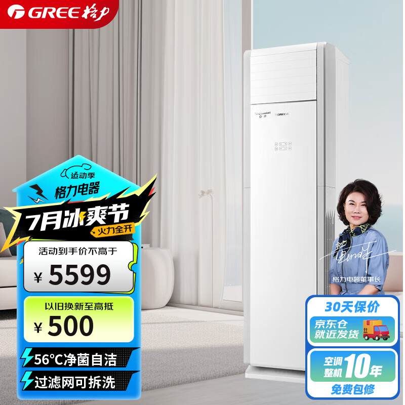 格力(GREE)2匹 京爽 新三级能效 变频冷暖 高温自清洁 立柜式空调柜机 KFR-50LW/(50533)FNhAs-B3价格:5599.00元!