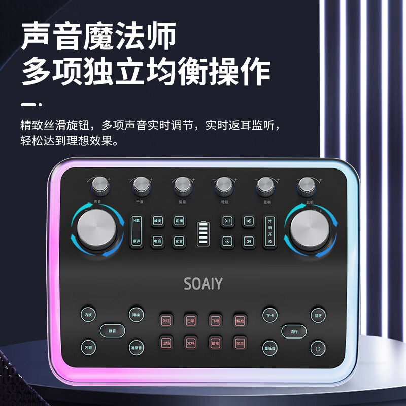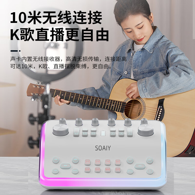索爱(soaiy)SG60直播声卡话筒音响一体机k神器手机电脑通用无线蓝牙唱歌家庭ktv双麦克风【流光白】价格:529.00元!