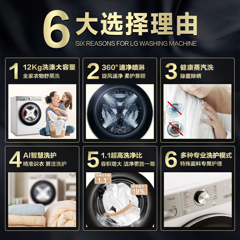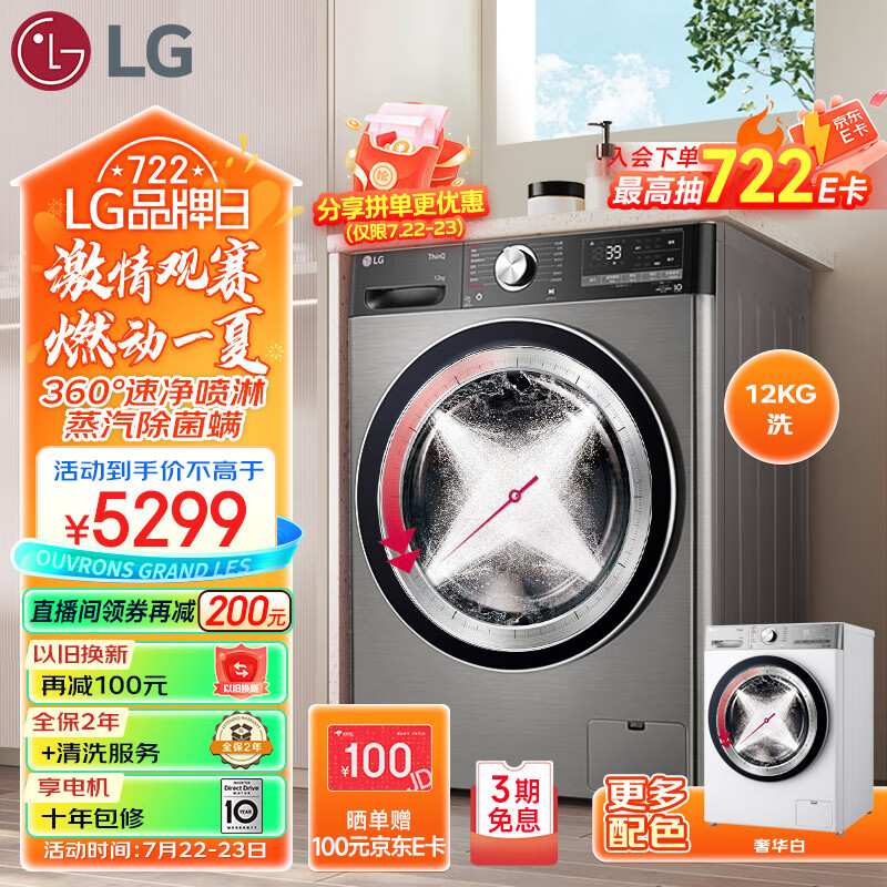 LG小旋风系列 12kg超薄家用洗衣机全自动 直驱变频 家电自动 洗净比1.1 360°速净喷淋 FCW12Y4PA 银价格:5299.00元!