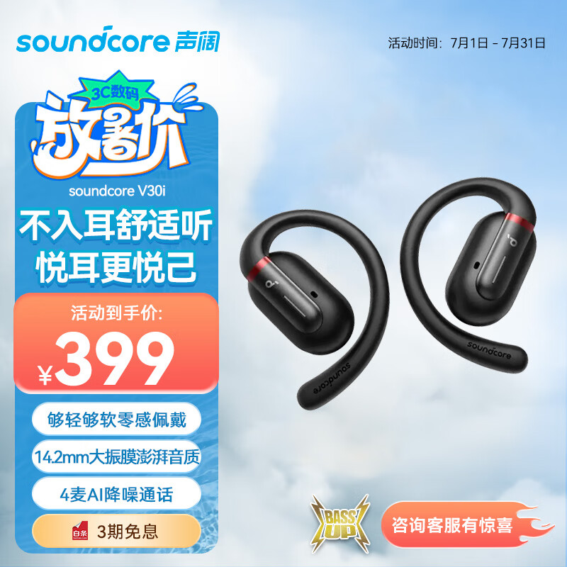 声阔soundcore V30i声阔不入耳蓝牙耳机黑挂耳式舒适运动跑步骑行长续航适用华为小米手机价格:296.00元!