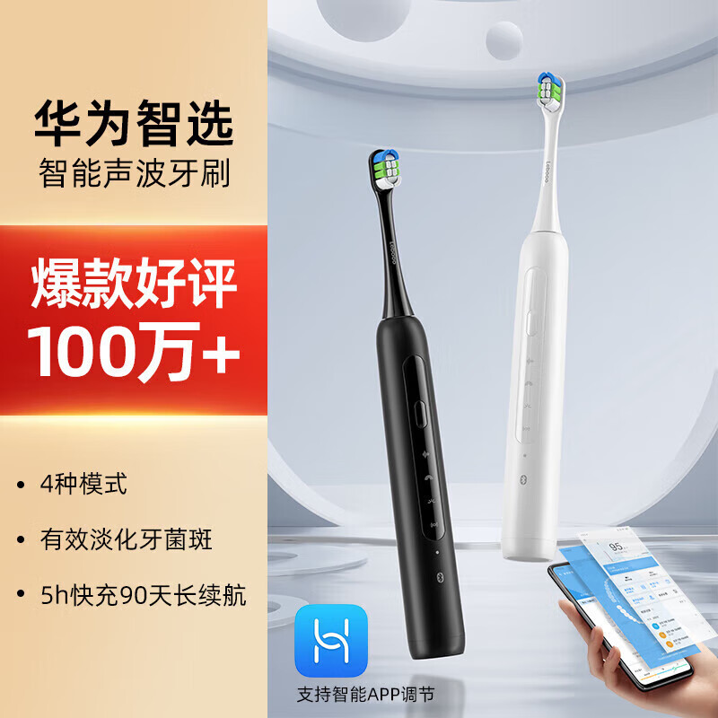 商品名称:华为智选华为(huaweihilink)成人电动牙刷自营声波震动美白情侣款智能牙刷光感白