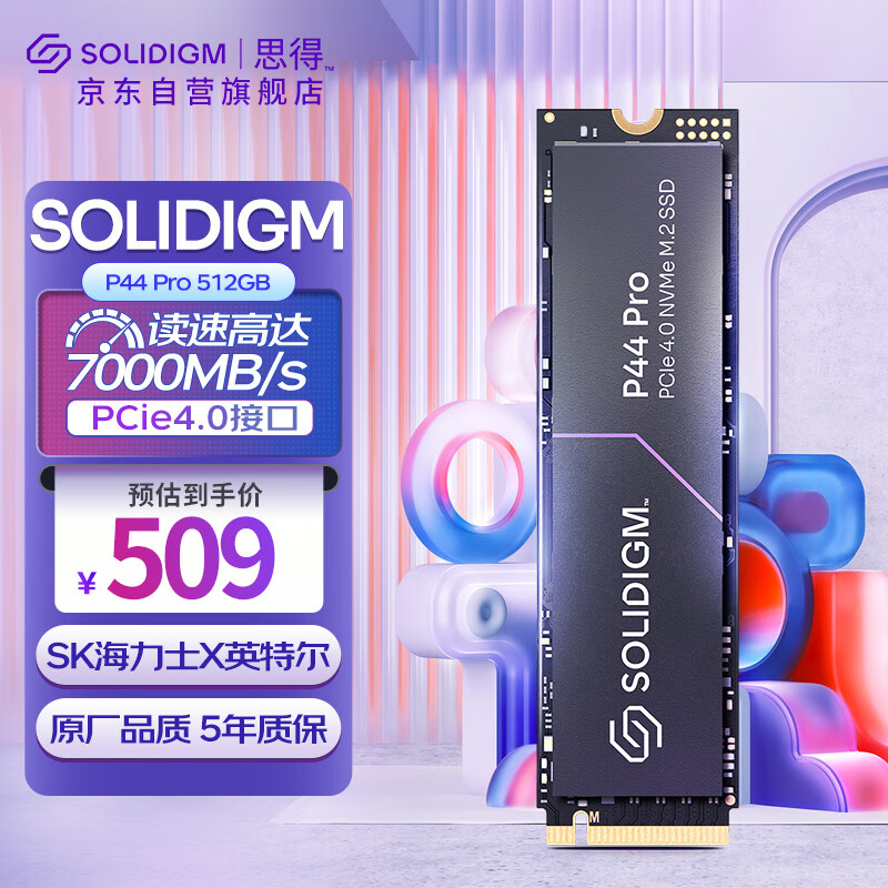 SOLIDIGM 思得P44 Pro 512G 高性能版SSD固态硬盘 M.2接口(NVMe协议 PCIe4.0*4) SK海力士价格:509.00元!