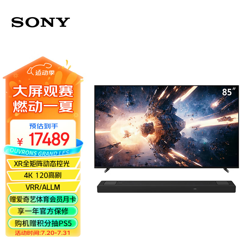 索尼(SONY)XR-85X90L+HT-A5000 旗舰游戏套装 回音壁 360智能穹顶 无线家庭影院 4K/120 VRR ALLM价格:17489.00元!