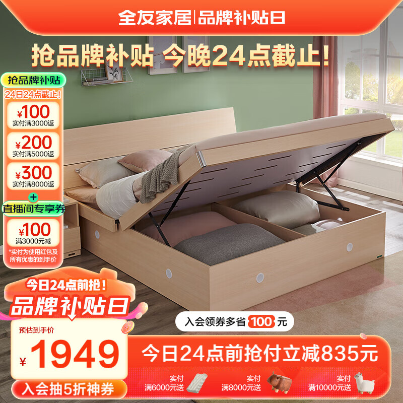 全友家居 现代简约双人床主卧室床家具1.8x2米高箱储物板式床106302价格:2784.29元!