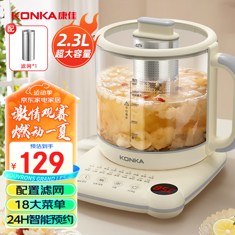 康佳(KONKA)养生壶 煮茶器 大容量玻璃保温开水烧水壶电热水壶 迷你玻璃煮茶壶2.3L KYSH-2308E-W(C)价格:129.00元!
