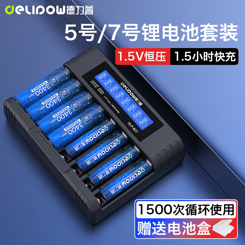 德力普(Delipow)充电电池 5号/7号锂电池1.5V恒压快充大容量配液晶显示充电器套装 适用游戏手柄/血压仪/话筒等价格:208.90元!