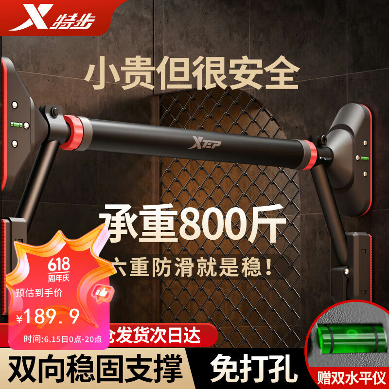 特步(XTEP)家用单杠室内成人引体向上器儿童免打孔门上健身器材运动吊杆 长价格:189.90元!