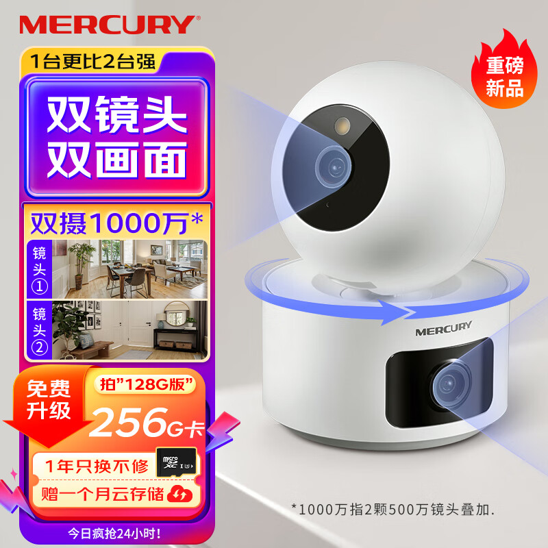 水星(MERCURY)双摄1000万全彩3K摄像头家用监控器360全景无线家庭室内通话网络手机远程MIPC552W双摄版价格:329.00元!