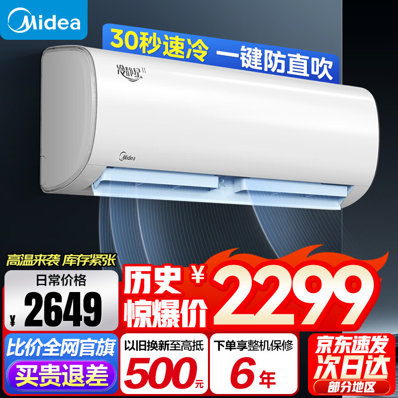 美的(Midea)1.5匹 新一级能效变频冷暖冷静星II二代 家用卧室壁挂式空调挂机省电星家用空调三代自清洁价格:2299.00元!