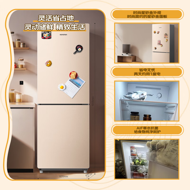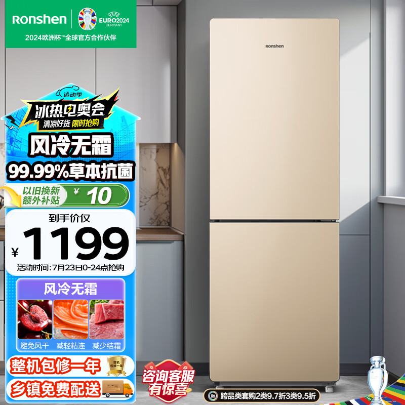容声(Ronshen)172升两门双开门二门家用小型电冰箱风冷无霜节能低噪出租房宿舍小户型迷你BCD-172WD11D以旧换新价格:1199.00元!