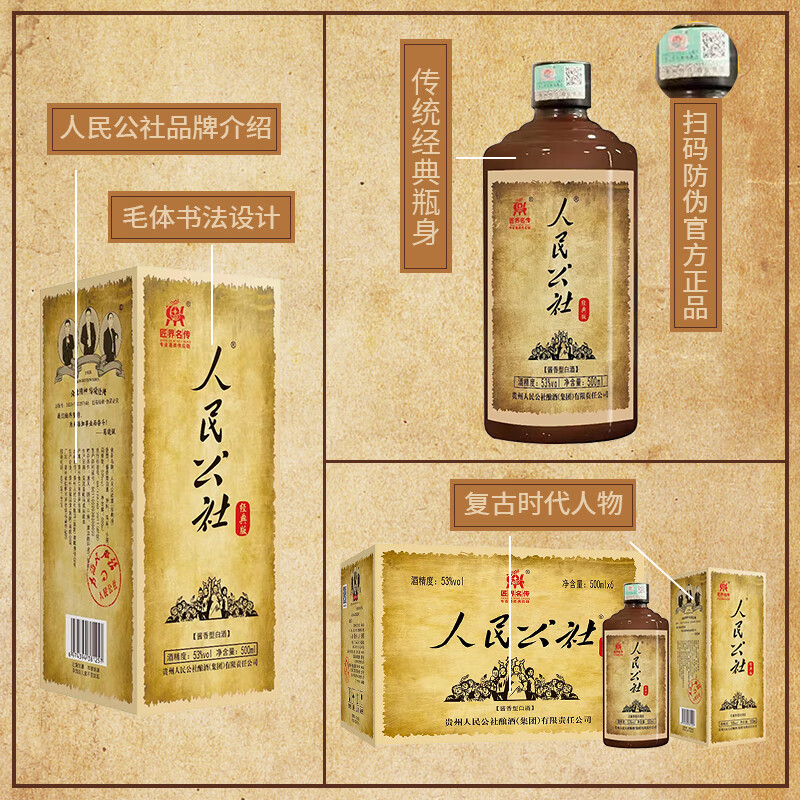 人民公社 贵州茅台镇53度酱香型白酒 纯粮坤沙酒 整箱6瓶 500ml/瓶价格:499.00元!