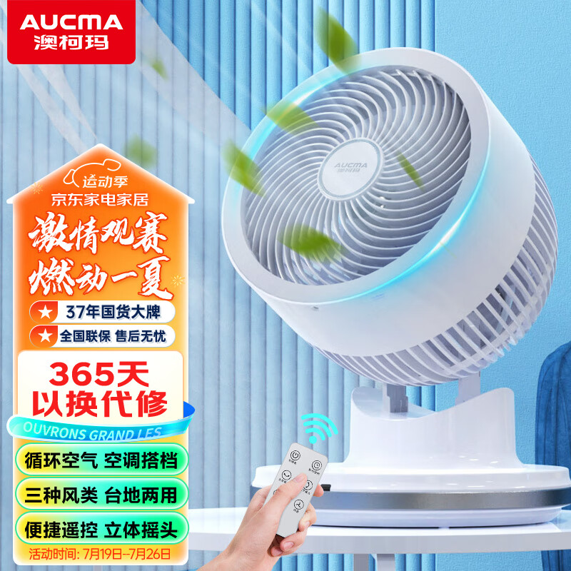 澳柯玛(AUCMA)电风扇/空气循环扇/遥控直流变频小风扇/广角摇头家用四季扇 KYT-15B933(Y)价格:219.00元!