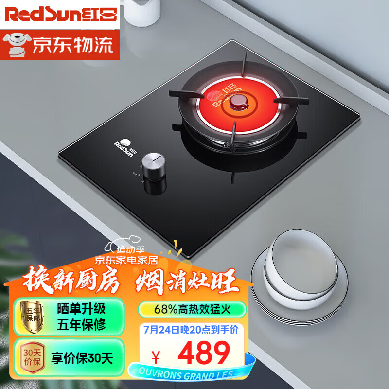 红日 RedSun 红外线 燃气灶 台嵌两用液化气单灶 一级能效 68%热效率 JZY-EM118B 液化气价格:499.00元!
