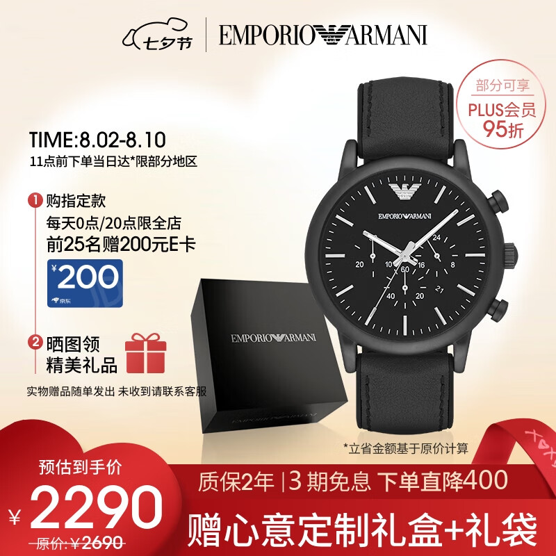 安普里奥·阿玛尼(Emporio Armani)手表男士黑武士系列多功能三眼皮带七夕情人节礼物送男友AR1970价格:2590.00元!
