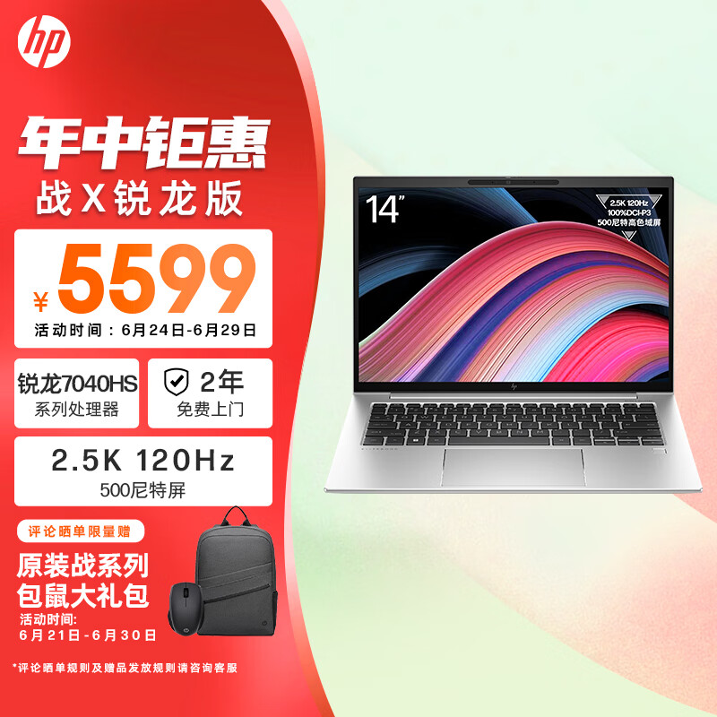 惠普(HP)战X Zen4锐龙 14英寸轻薄笔记本电脑(R7-PRO 7840HS 16G 1T 2.5K 500尼特屏 2年上门 AI高性能)价格:5699.00元!