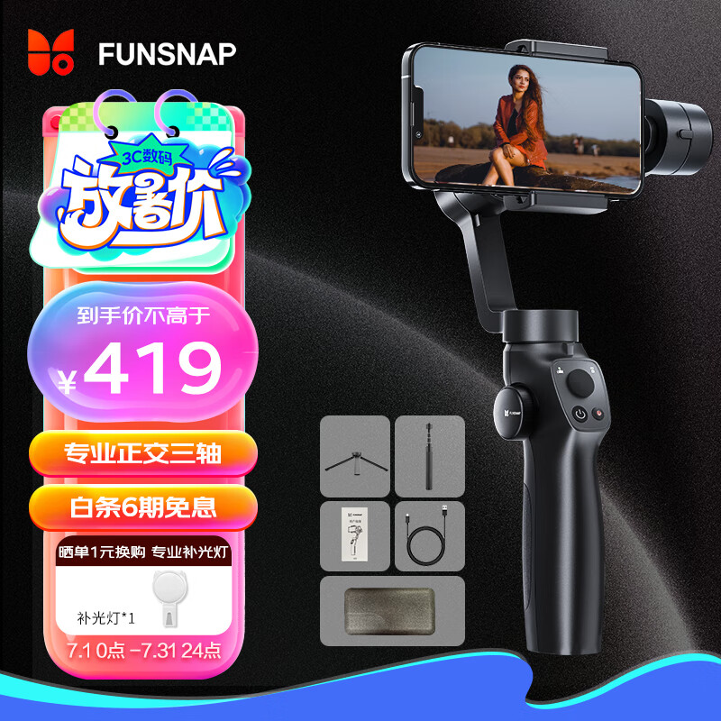逗映(FUNSNAP)2s 手机稳定器 手持手机云台 三轴防抖云台稳定器 专业摄影 全域无死角运镜 俯仰320°大角度价格:419.00元!