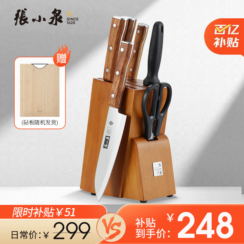张小泉 华韵七件刀具套装 家用菜刀切片刀斩砍骨刀小厨刀水果刀剪刀价格:299.00元!