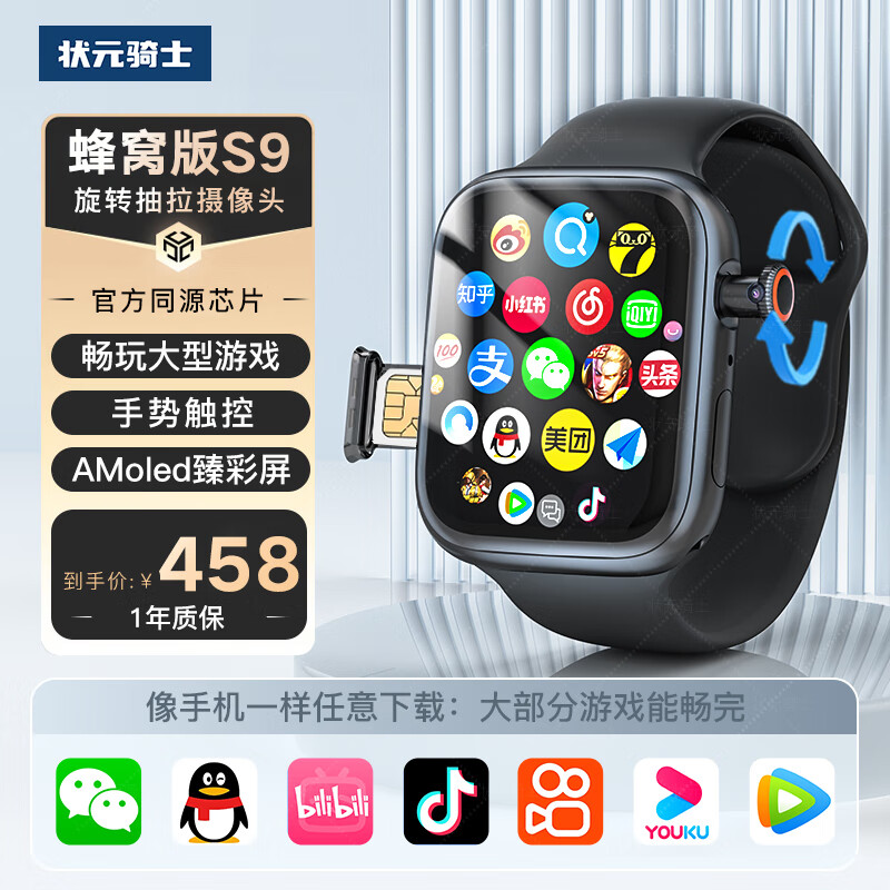 状元骑士 S9插卡顶配版智能电话手表watch蜂窝5G卡通可下载WiFi抖音微信男女运动初高中生价格:488.00元!