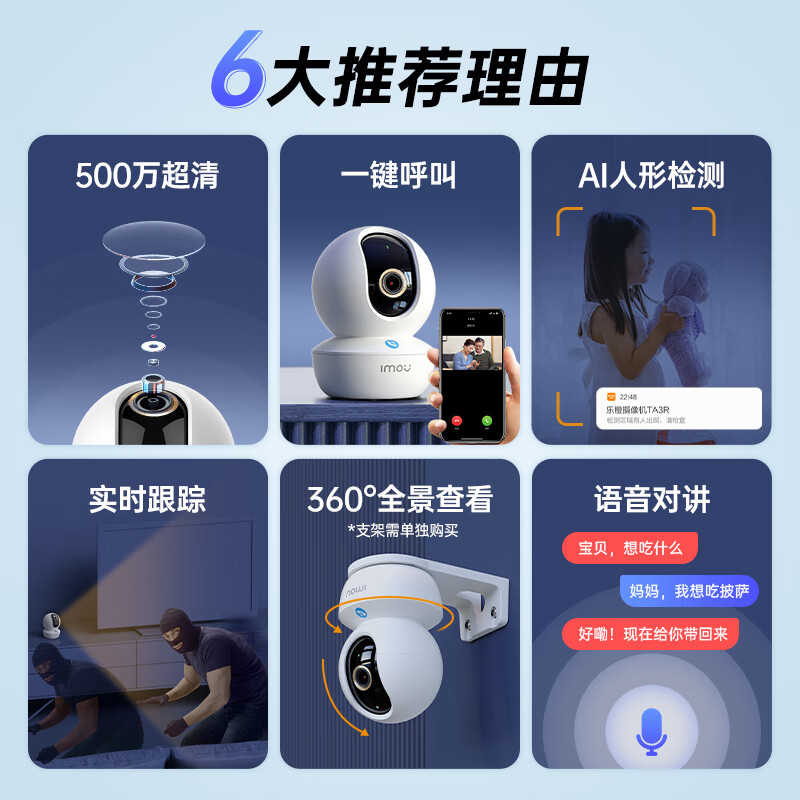 乐橙监控摄像头家用无线室内TA3R 500万像素3K高清wifi手机远程监控360无死角 家庭宠物婴儿监护看护价格:179.00元!