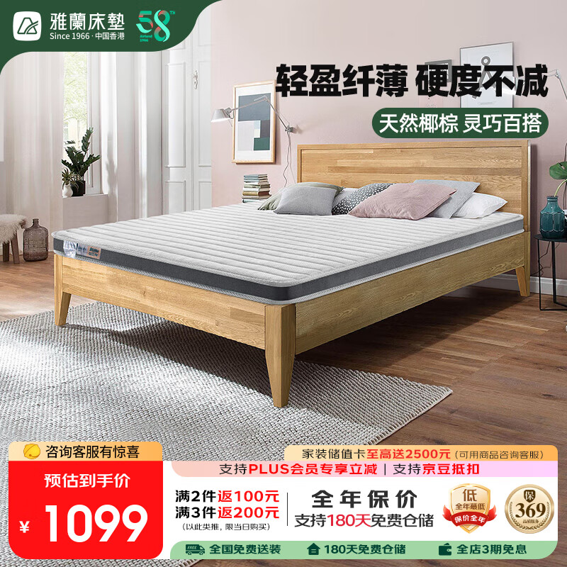雅兰(AIRLAND)椰棕床垫舒脊偏硬棕垫宿舍床垫 硬核乳胶椰棕款【7cm】0.9*1.9米价格:1399.00元!