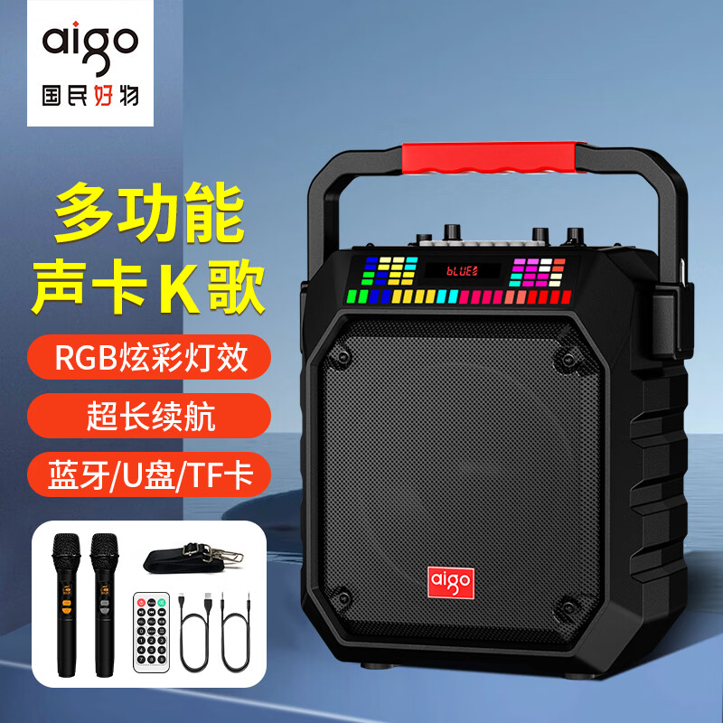 爱国者T166蓝牙音箱户外便携广场舞音响无线K歌低音炮声卡特效无线摆摊收款喇叭 双麦克风 黑色价格:271.30元!