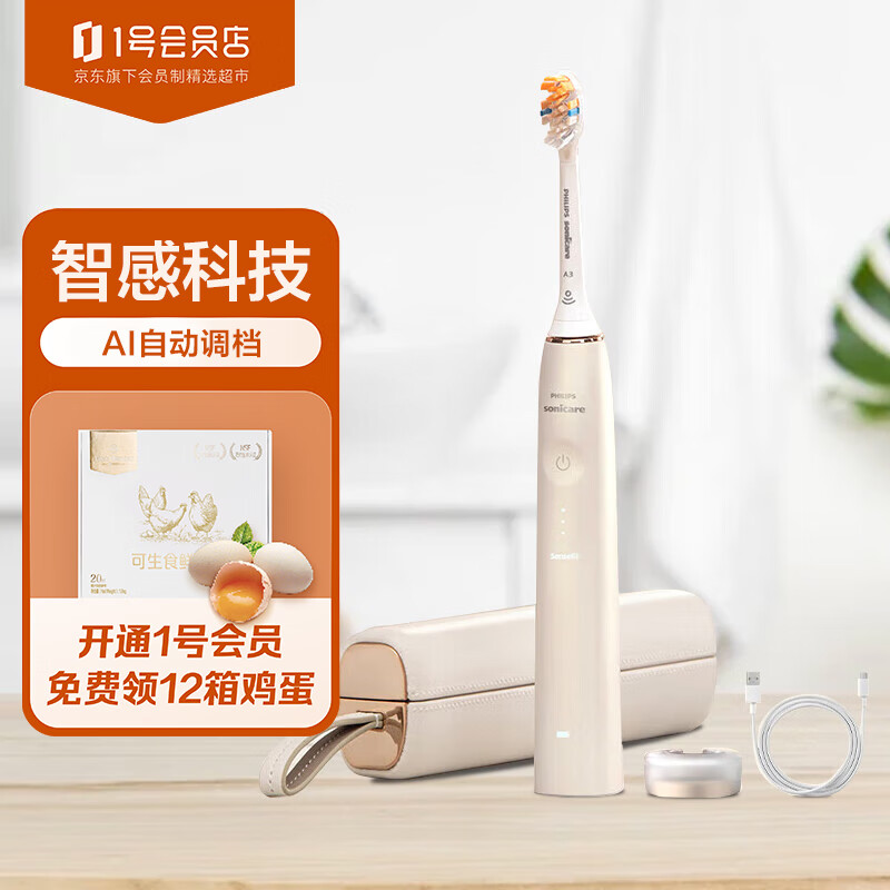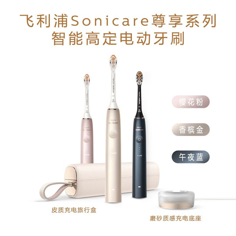 飞利浦电动牙刷成人 礼物 送礼 钻石AI刷 含皮质充电旅行盒 20倍清除牙菌斑 香槟金 HX9996/11价格:1479.00元!
