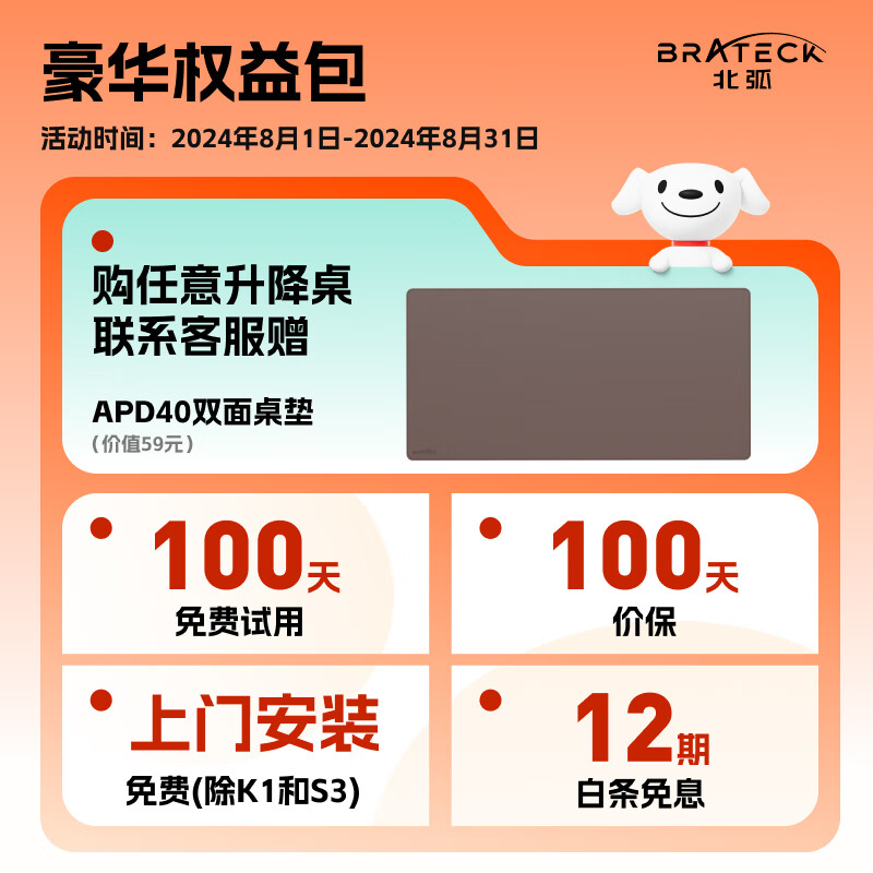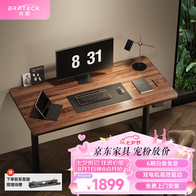 Brateck双电机电动升降电脑桌 北弧站立办公升降书桌 升降台 M1棕1.2米价格:2179.00元!