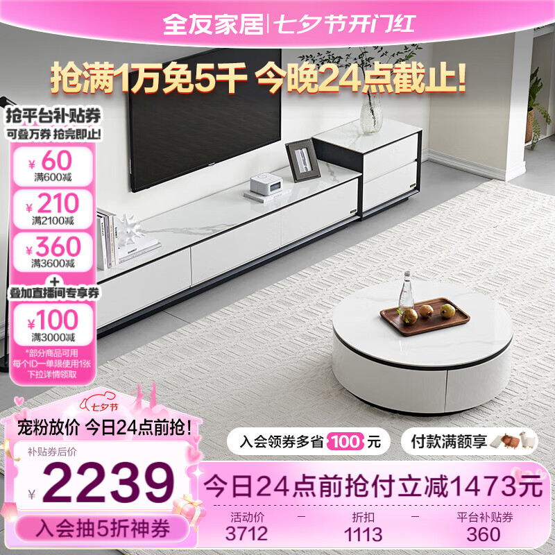 全友家居 岩板茶几电视柜组合现代简约客厅家用圆形茶几边几DW1055A价格:3712.86元!