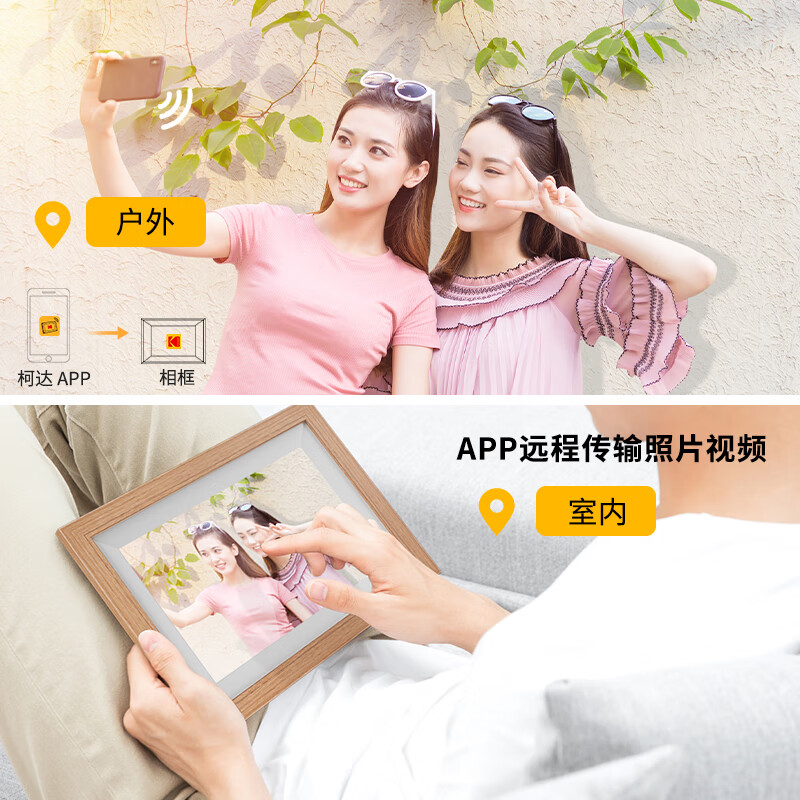 KODAK柯达 1012W 数码相框10.1英寸高清电子相册照片视频播放器触摸屏可摆台挂壁 木色价格:599.00元!