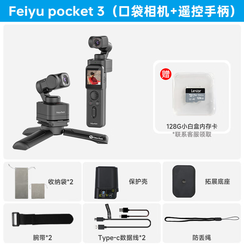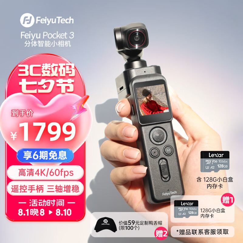 FeiyuTech飞宇Feiyu pocket3口袋云台相机骑行户外运动相机手持可分离摄像头高清增稳vlog摄影机 标配+TF卡价格:1799.00元!