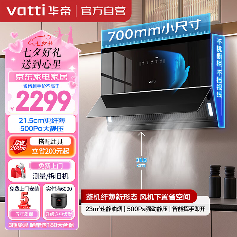 华帝(VATTI)【小魔盒】抽油烟机超薄近吸家用侧吸大吸力23风量挥手智控脱排油烟机小尺寸 以旧换新 i111C4价格:2299.00元!
