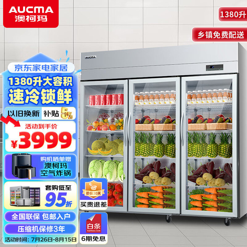 澳柯玛(AUCMA)保鲜柜展示柜冷藏双开门立式冰柜商用大容量水果蔬菜饮料超市饭店大容量冰箱陈列柜商用冰箱 三门1380升 标准款 VC-1380AJ价格:3999.00元!