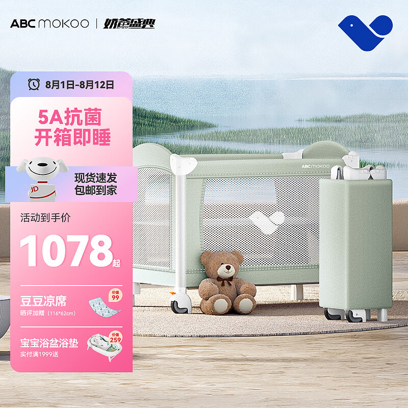 ABCMOKOO折叠婴儿床拼接大床多功能新生便携可移动宝宝床-莫兰迪绿PRO款价格:1878.00元!
