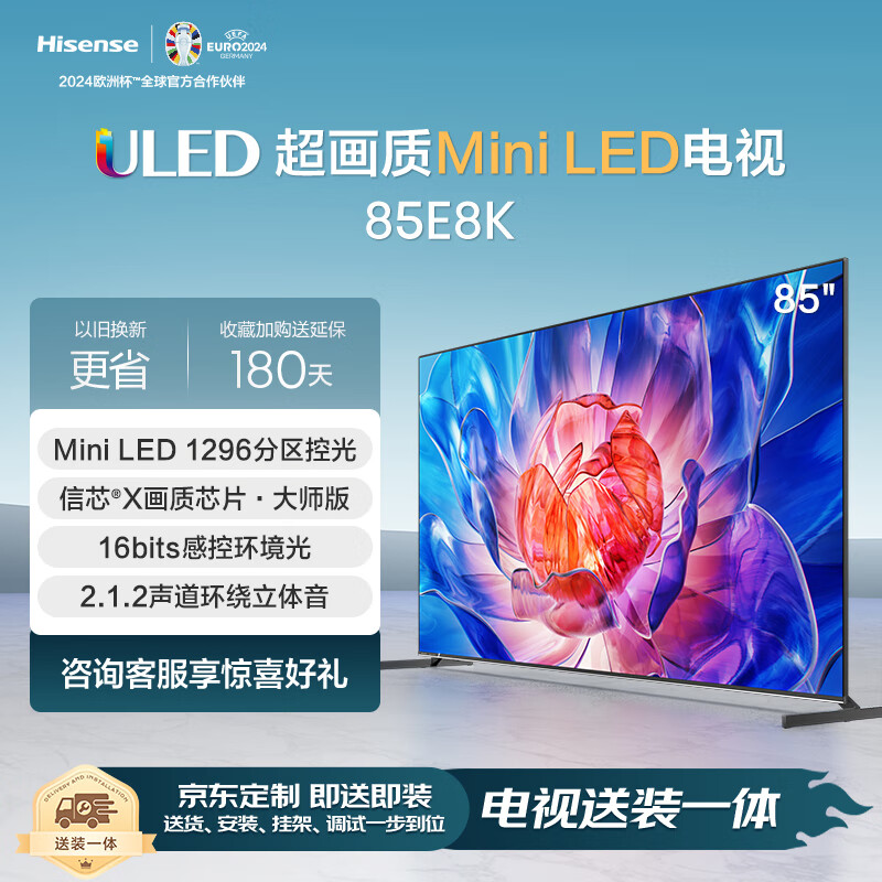 海信电视85E8K 【送装一体版】 85英寸 ULED X Mini LED 屏 液晶智能平板电视机价格:9798.00元!