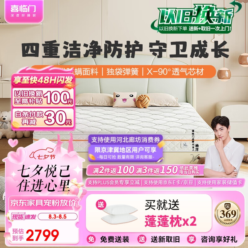 喜临门A类面料 可脱卸设计 独袋弹簧床垫 3D芯材床垫 白骑士kids1.8x2米价格:2999.00元!