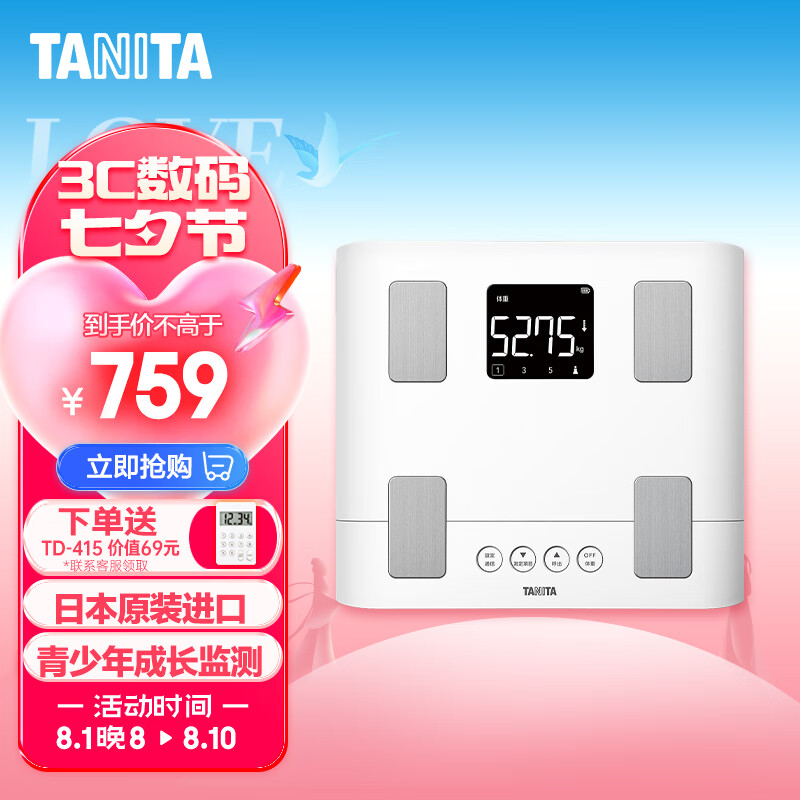 百利达(TANITA)BC-333LS家用智能体重体脂秤 蓝牙智能高精度测量仪 青少年专用体脂秤减肥专用精准 白色价格:899.00元!