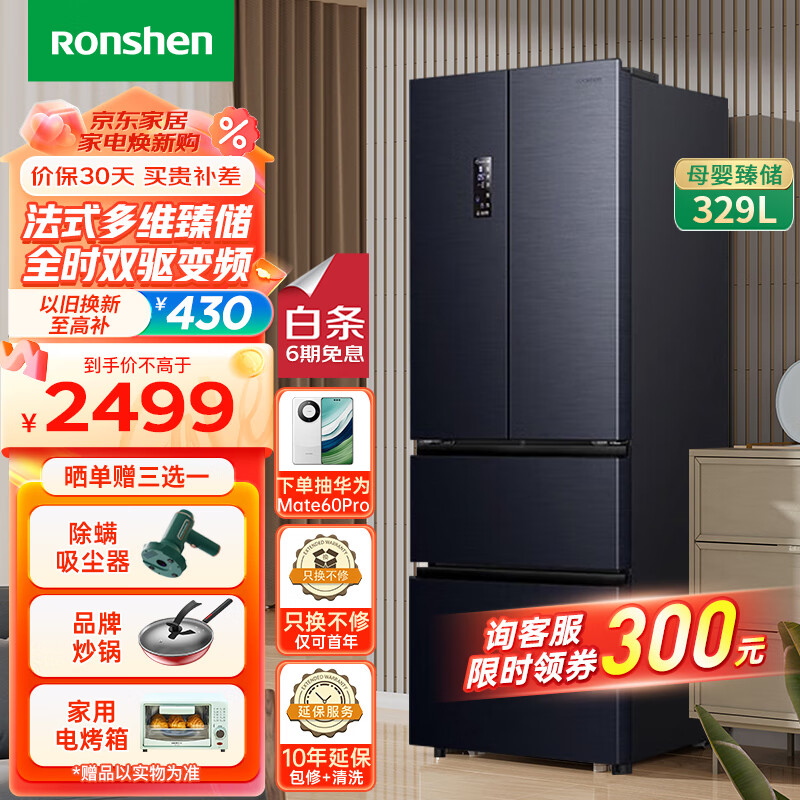 容声(Ronshen)冰箱法式四开门329升一级变频风冷无霜母婴电冰箱家用大容量可嵌入法式超薄多门冰箱BCD-329WD16MP价格:2799.00元!