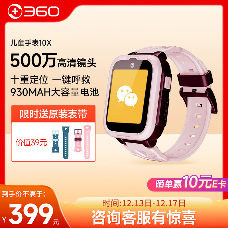 360儿童电话手表10X 微信QQ儿童手表版 10重定位 超长续航 4G通20米防水高清视频通话手表男女孩 珊瑚粉价格:399.00元!
