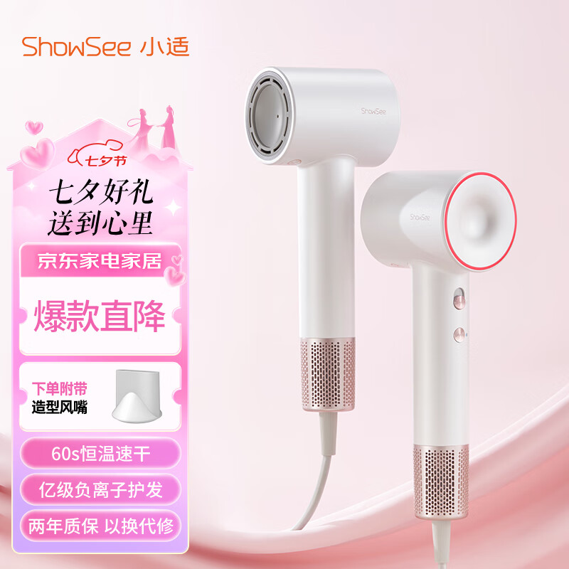 小适11万转高速马达吹风机家用风筒大功率/高浓度负离子护发/大风力速干降噪电吹风 云雾白 A18-W价格:249.00元!