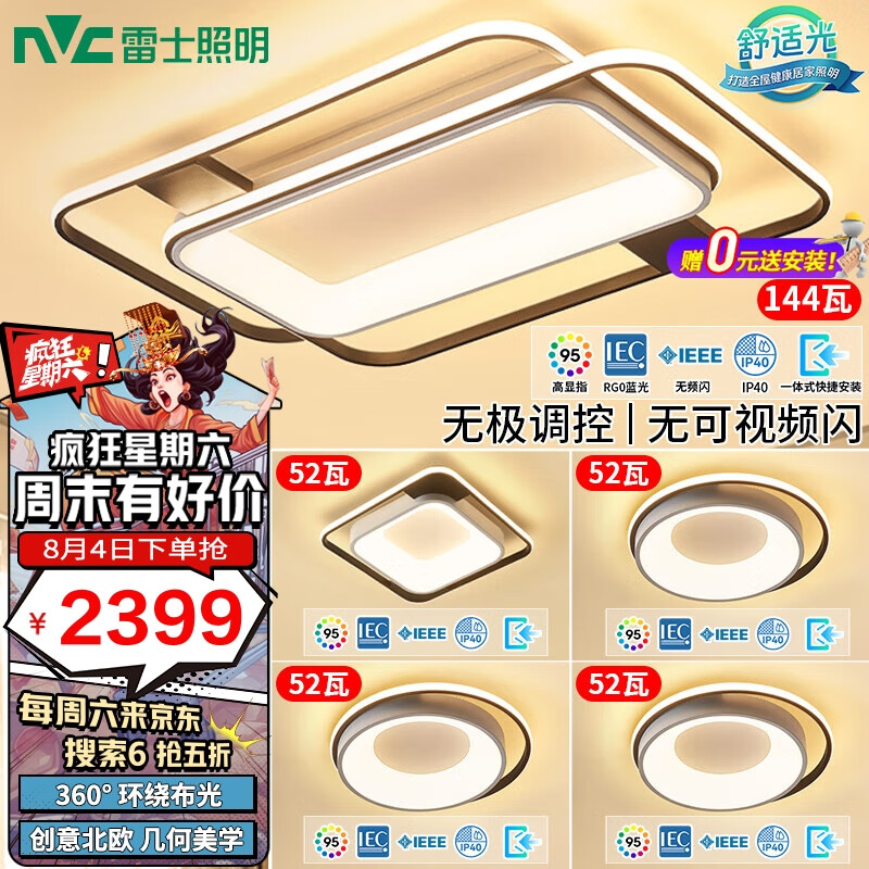 雷士(NVC)吸顶灯 后现代创意灯具温馨浪漫客厅灯卧室灯餐厅灯 环宇系列套餐价格:2726.00元!