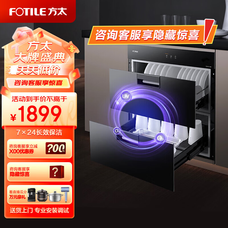 方太消毒柜家用嵌入式厨房二100L大容量消毒碗柜长效保洁双重杀菌ZTD100J-J51E 消毒柜价格:1899.00元!