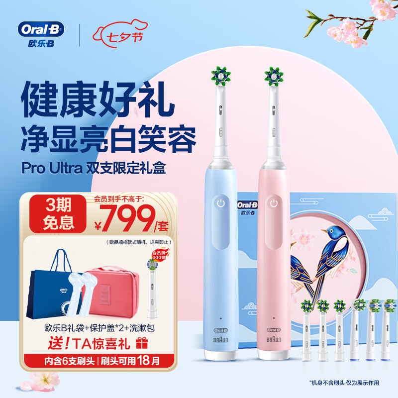欧乐B成人电动牙刷Pro4Ultra双支甄选礼盒Pro系列3D声波圆头深度清洁牙龈按摩送男友女友七夕情人节礼物价格:958.00元!