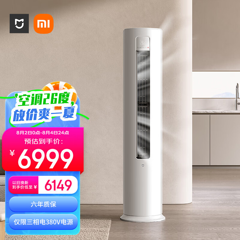 小米5匹 新能效 变频冷暖 商用380V 内机自动清洁 圆柱空调立式柜机 KFR-120LW/N1A3 巨省电价格:6999.00元!