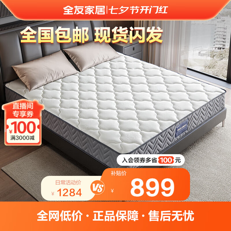 全友家居 3D环保椰棕弹簧床垫硬偏硬 双人床棕垫厚床垫105190-2价格:899.00元!