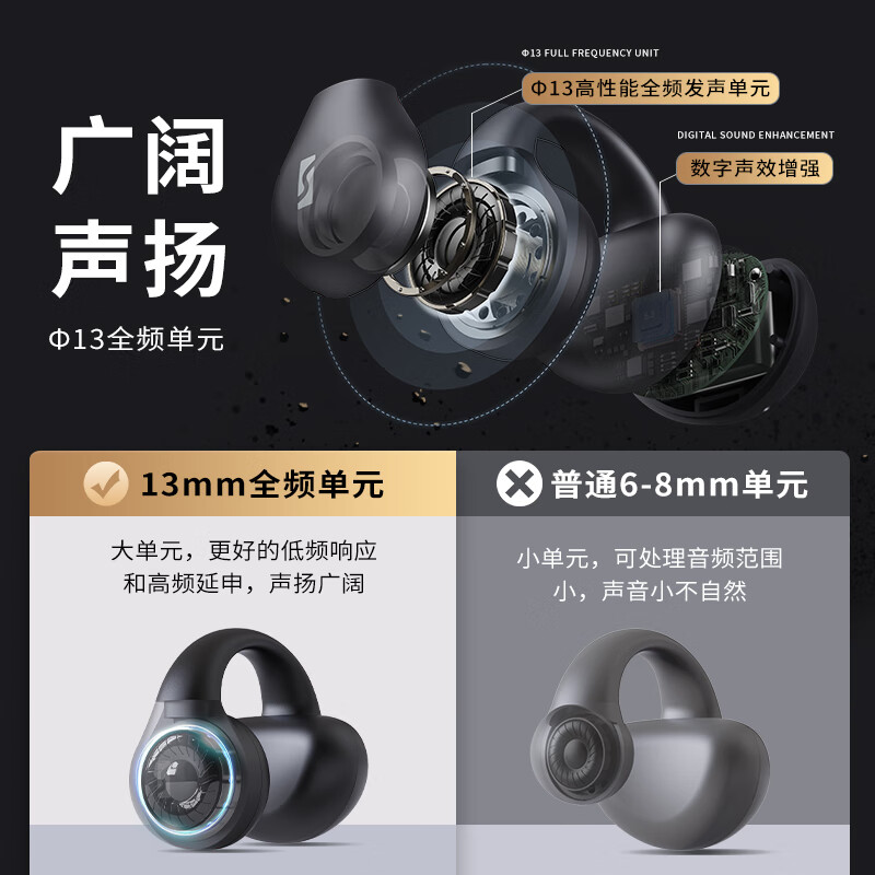 蛇圣陨石C2真无线蓝牙耳机开放式夹耳耳夹式骨传导概念升级气传导不入耳运动跑步降噪适用于苹果华为价格:189.00元!